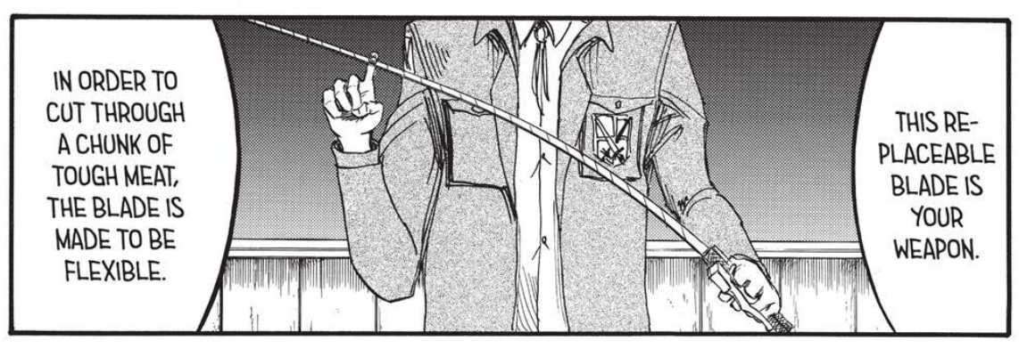 He does have to cock his head to the side at the mention of becoming "titan food". ]