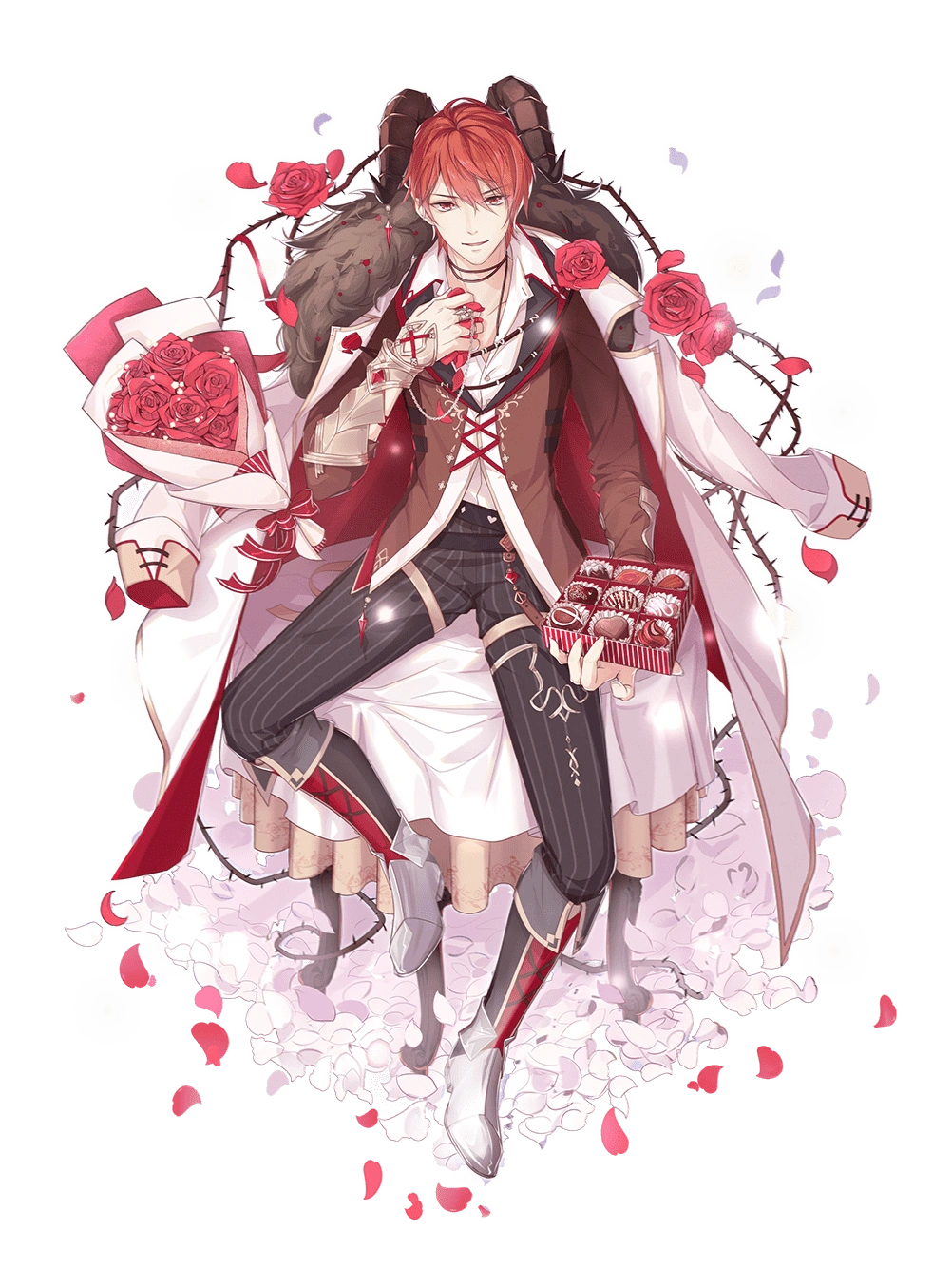 Might you be looking for a gift? [Everett inquires to someone looking over the wares. The faun reaches to pluck a single rose from a display, holding it gently in his hands]